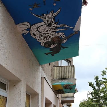 Vaikštinėdami pėsčiųjų bulvaru ir kilstelėję aukštyn galvas, galime atrasti balkonus, kuriuos ištapė Arūnas Uogintas. Tai spalvingi ir linksmi „paminklai” jau išėjusiems charizmatiškiems miesto kūrėjams. Reda Uogintienė savo sukurta ir ant pastato kampo apgyvendinta laume vėl mums primena Greimą, kuriam laumių tema buvo labai artima. O ar kas žino, kaip iš tikrųjų atrodo laumė? Jei pasigilintume į šios menininkų poros kūrybinę biografiją, atrastume ne tik jų kūrinių plastiką ir idėjas – ten slypi ir Šiaulių miesto performanso meno istorija, scenografijos teatro spektakliams, avangardinės mados eksperimentai.